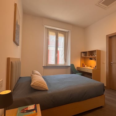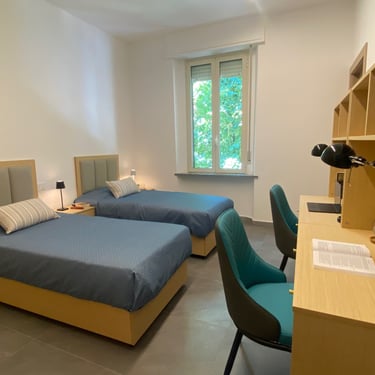 Le nostre camere moderne e completamente arredate, sono pensate per offrirti il massimo comfort: letti comodi, una scrivania perfetta per studiare e lo spazio necessario per organizzare le tue cose.